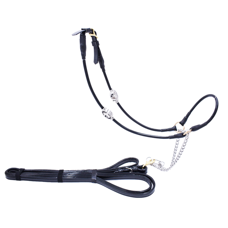 配備龍頭與領(lǐng)繩之牽馬步驟需要牽馬時,應(yīng)于馬匹內(nèi)側(cè)馬頸位置進(jìn)行,左手把領(lǐng)繩繩尾盤成繩圈,右手握緊領(lǐng)繩鐵環(huán),離開馬頭約20厘米的位置。牽馬前進(jìn)時,騎師眼睛向前進(jìn)方向直望,位于馬匹內(nèi)側(cè)馬頸位置,堅定的一步一步向前走。切記不可望向馬匹,否則馬匹則可能停步不前行。若馬匹拒絕前進(jìn),不可強(qiáng)拉領(lǐng)繩,應(yīng)用左手領(lǐng)繩繩尾輕輕掃向馬匹腹部,或把馬頭向外側(cè)推動,待馬匹前腿移動時,再牽馬前進(jìn)。需要牽馬轉(zhuǎn)彎時,切記要向外側(cè)轉(zhuǎn)動...